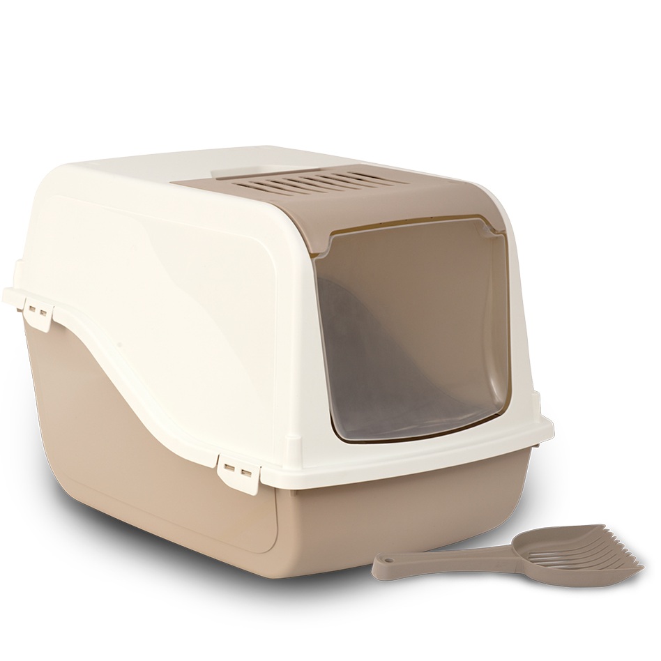 Un bac à litière confortable et pratique, doté d’une porte et d’une pelle amovible. Ses surfaces brillantes facilitent le nettoyage.