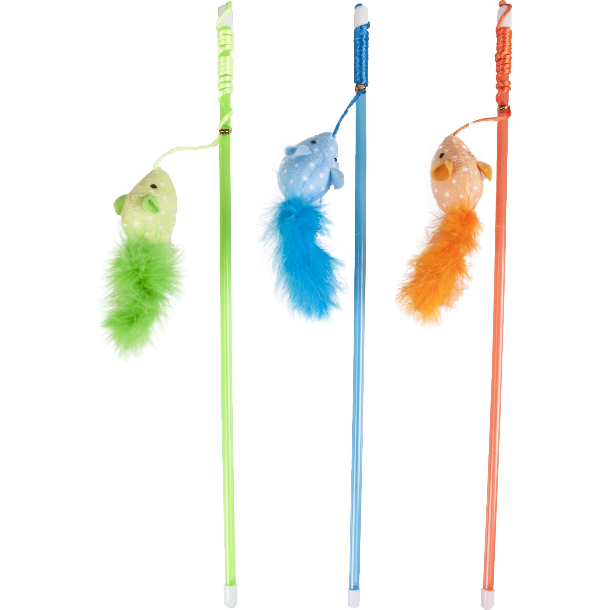 Flamingo Jouet Chat Wopke Canne à pêche avec Souris (Orange | Bleu | Vert)