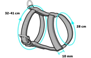 - Le harnais a une boucle à clic et la laisse a un mousqueton