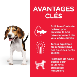 Hill’s Science Plan ALIMENT POUR CHIOT MEDIUM au POULET (poulet 17 % ; total volaille 27 %) est un aliment complet pour les chiots de taille moyenne jusqu’à l’âge de 12 mois, et pour les chiennes en gestation ou en lactation.