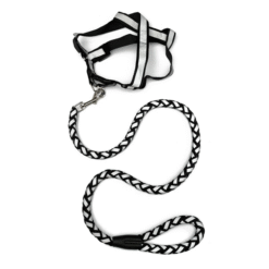 Cette laisse avec harnais réfléchissant, vous permettra de vous promener en toute sécurité et de rendre visible votre animal de compagnie lors de vos balades.