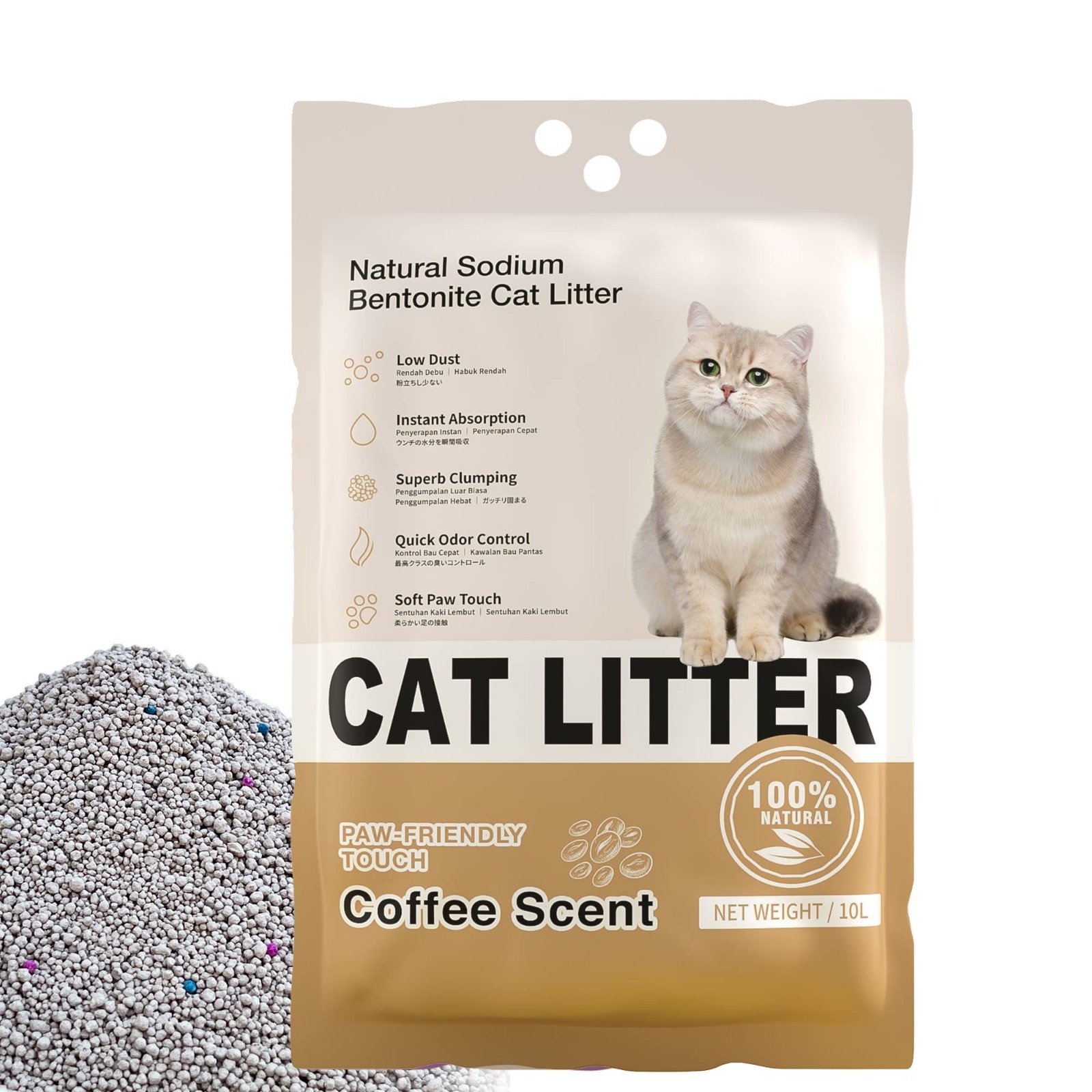 est cinq fois plus volumineuse qu’une litière classique. Elle possède une capacité d’absorption d’eau et d’odeurs exceptionnelle. Fabriquée entièrement à partir de bentonite naturelle, elle est sans additifs. Séchée à haute température, elle est exempte de bactéries et de germes. Sa structure agglomérante compacte assure une utilisation prolongée. Économique et facile à nettoyer grâce à ses propriétés agglomérantes, elle dégage un doux parfum au contact d’un liquide.