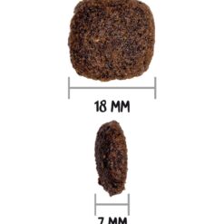 Alimentation conçue spécifiquement pour couvrir les besoins nutritionnels des chiens de grande taille (à partir de 26-28 kg). La taille des croquettes est plus grande, ce qui stimule la mastication et oblige à ingérer plus lentement.