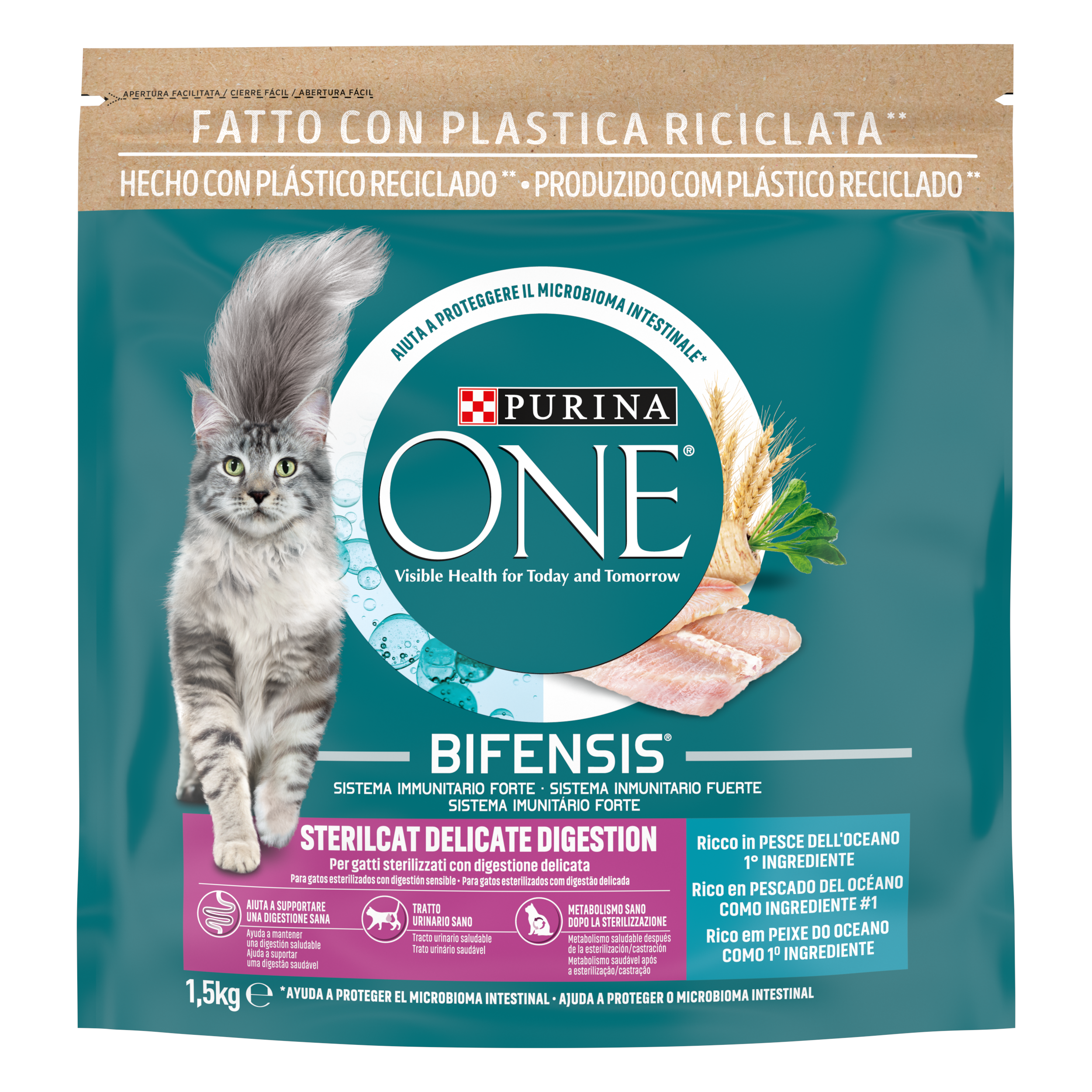 PURINA ONE® BIFENSIS® est une formule nutritive avec des batteries fonctionnelles bénéfiques, et des lactobacilles. Il est scientifiquement démontré qu’il soutient le système immunitaire et aide à protéger le microbiome intestinal de votre chat.