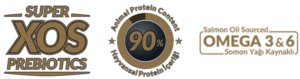 Ingrédients : Protéines de saumon hydrolysées, Protéines animales (déshydratées), Maïs, Graisse de poulet, Riz, Pulpe de betterave, Protéines de poisson hydrolysées, Vitamines et minéraux, Huile de saumon, xylooligosaccharides (XOS), Levure de bière, Sel, Yucca schidigera, Conservateurs – antioxydants (E320 & E321).