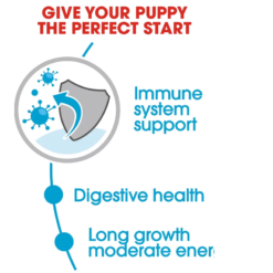 Développement cérébralEnrichi en acide gras oméga-3 (DHA), qui est scientifiquement prouvé pour soutenir le développement cérébral et promouvoir l’apprentissage du chiot lors de son éducation précoce.