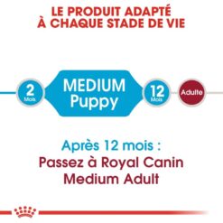 Aliment complet pour chiots de taille moyenne (poids adulte de 11 à 25 kg) – Jusqu’à 12 mois.